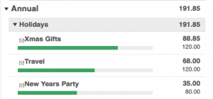Get fancy! Group Envelopes using colons, such as “Holidays: XMas Gifts” and “Holidays: Travel.” Goodbudget will keep track of the individual budgets, as well as the group’s total budget.